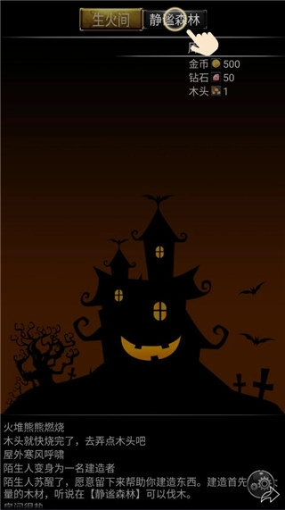 3、木材即将用尽,赶快去周围的宁静森林采集木材。