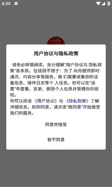 1、安装后打开软件,提示同意与否,点击同意进入注册界面;