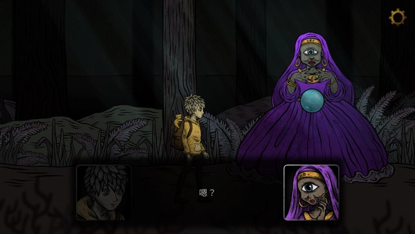 4、向右移动,遇到一个独眼女子,继续对话并解开谜题。