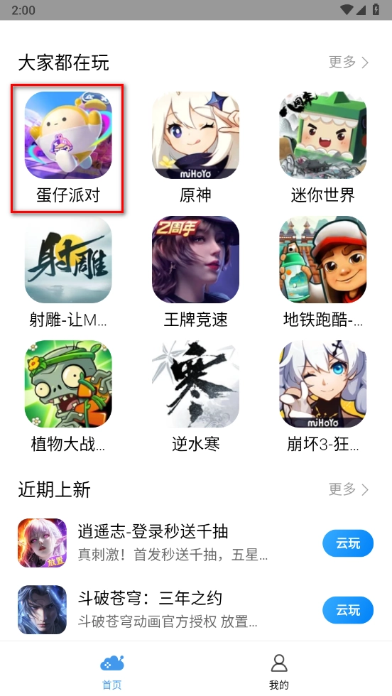 1. 开启小米云游戏,在其中寻觅自己想玩的游戏,就拿《蛋仔派对》来说,接着点击该游戏。