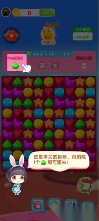 2.进入关卡开始挑战,轻松体验经典三消玩法。